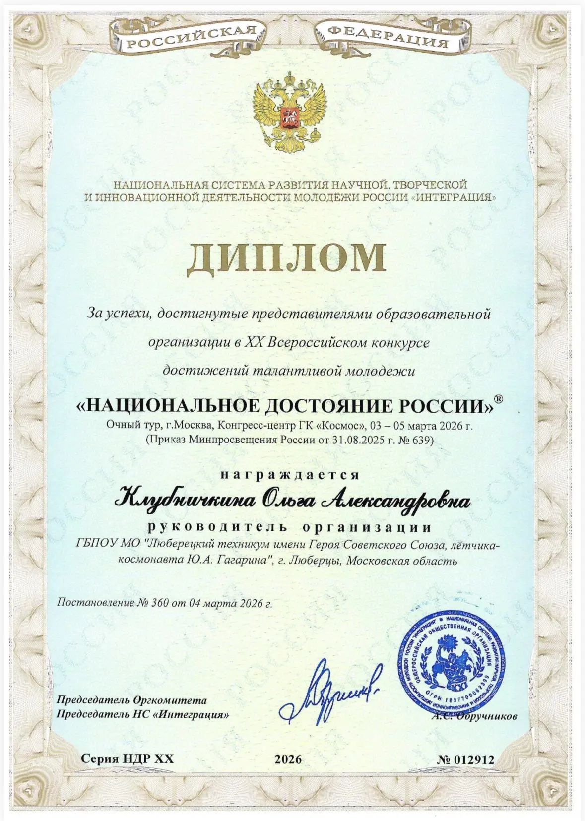 Студенты Люберецкого техникума имени Ю.А. Гагарина активные участники Всероссийского конкурса достижений талантливой молодежи «Национальное достояние России».