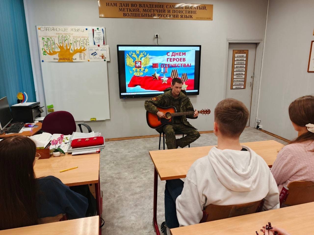 9 декабря в России отмечается День Героев Отечества. В этот день мы чтим подвиги тех, кто мужественно защищал и защищает нашу Родину, проявляя доблесть, самоотверженность и верность долгу. В преддверии этого события, студенты Люберецкого техникума имени Ю.А. Гагарина имели уникальную возможность узнать о героизме из первых уст. В рамках акции «История героев» состоялась встреча с участником специальной военной операции, выпускником нашего техникума Олегом Борисовым. Это была не просто беседа, а настоящее погружение в реальность, где героизм проявляется в повседневных поступках наших современников. Студенты с неподдельным интересом слушали рассказы бойца, который делился своим опытом, переживаниями и мыслями о долге, чести и любви к Родине. Наш гость читал стихи, написанные в окопах, пел под гитару песни. Призывал студентов хорошо учиться и развивать свои творческие возможности. Для этого передал в дар ребятам свою гитару, которая в часы затишья согревала души бойцов на передовой. Встреча позволила молодым людям узнать и понять истинное значение слова "Герой".