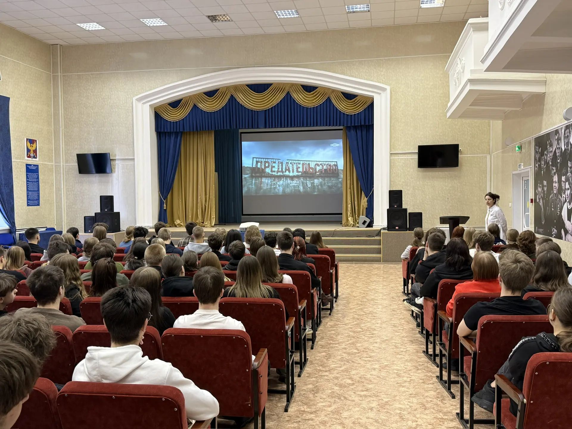 По окончании урока был показан документальный фильм Андрея Медведева "Предательство", который является для молодых людей не только информированием о случившихся событиях, но и предостережением.