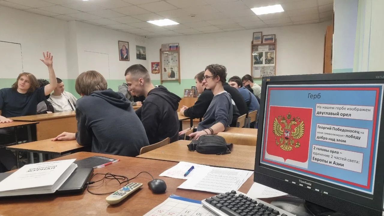 В преддверии Дня государственного герба Российской Федерации в Люберецком техникуме имени Ю.А. Гагарина, в рамках занятия по истории, были проведены познавательный классный час, посвящённый истории появления государственного герба нашей страны, а также викторина на тему государственной символики Российского государства. Студенты техникума не только узнали много новых фактов о гербе Российской Федерации, но и продемонстрировали свои знания в области государственной символики нашей Родины.