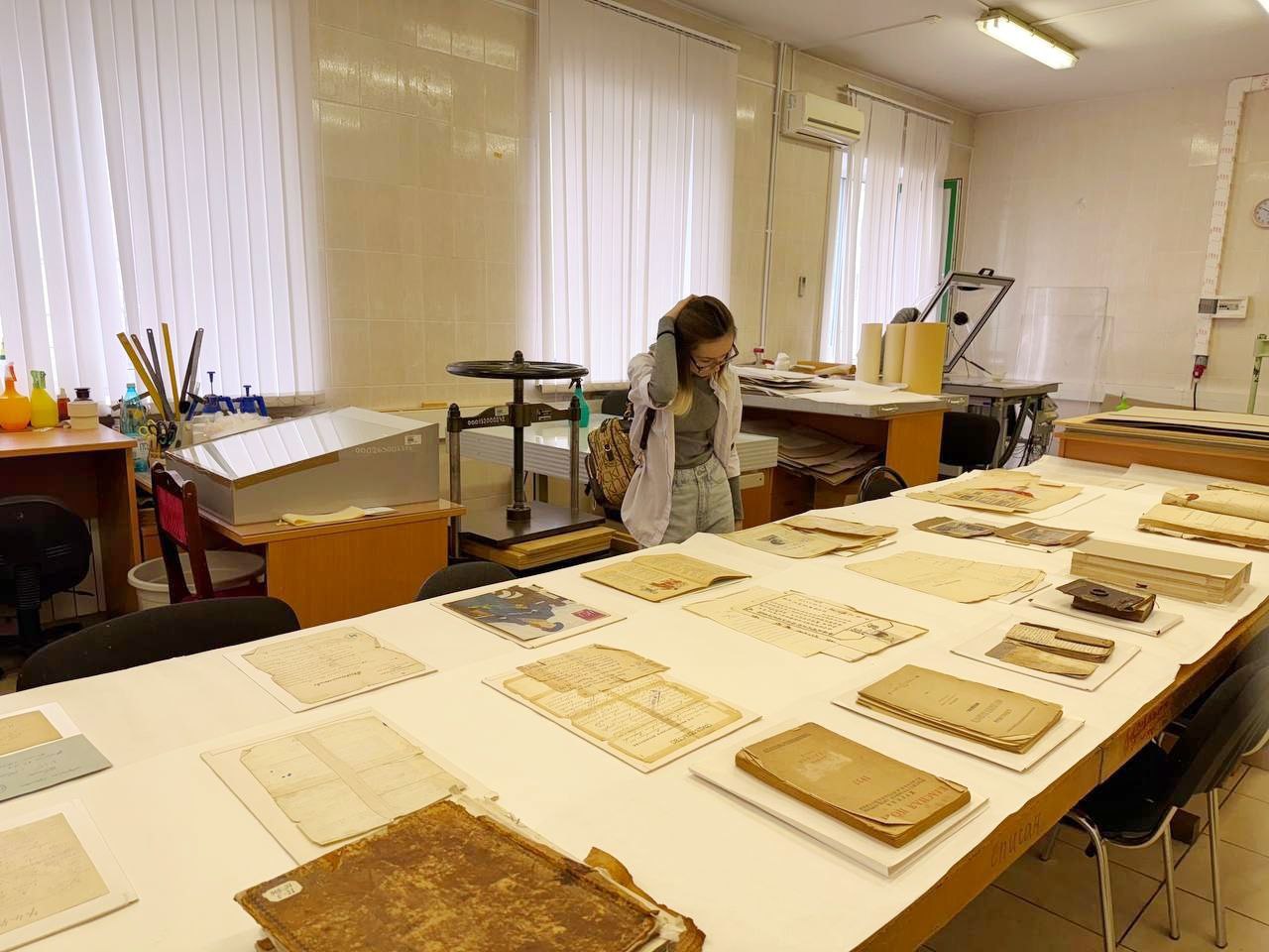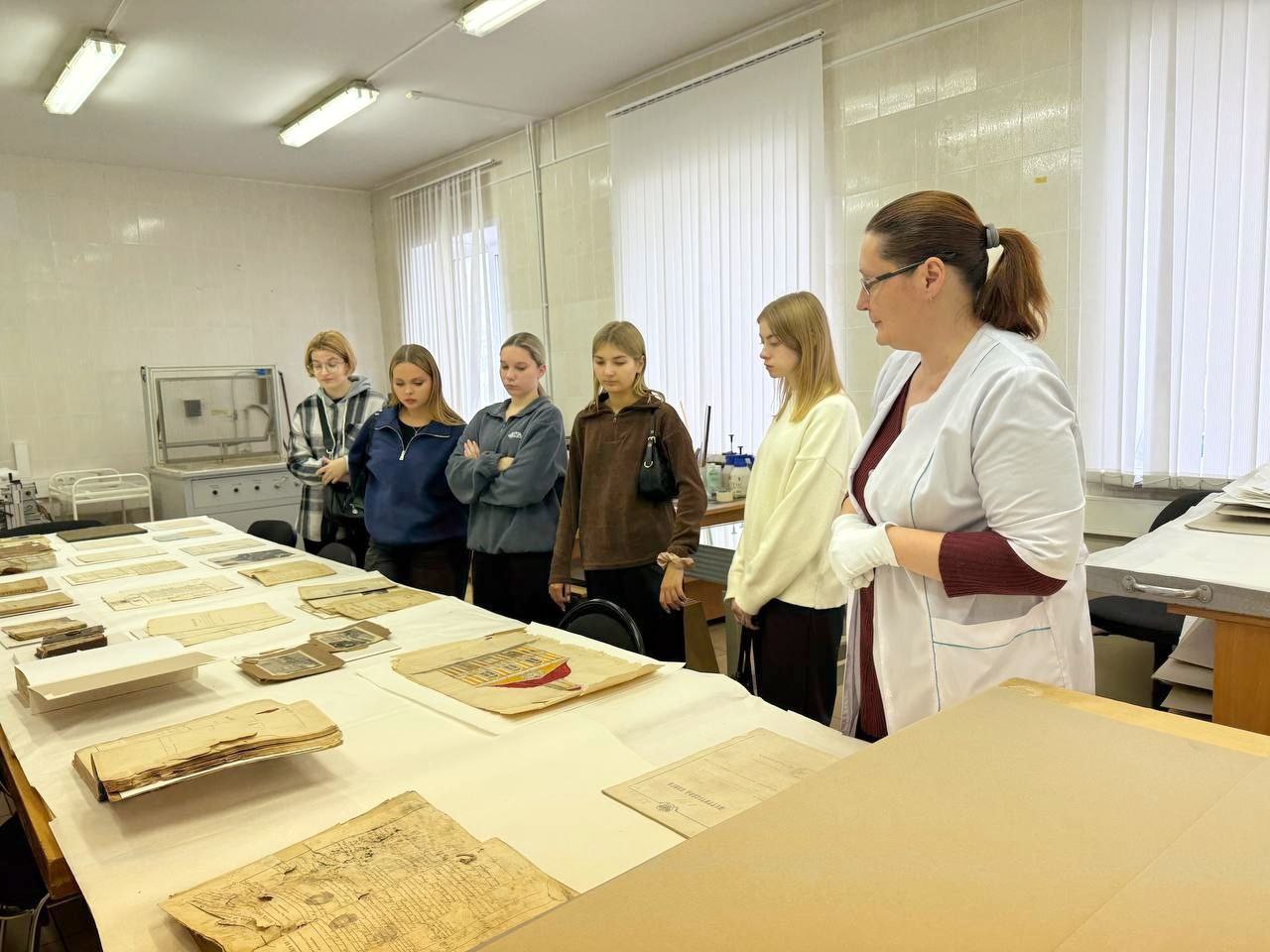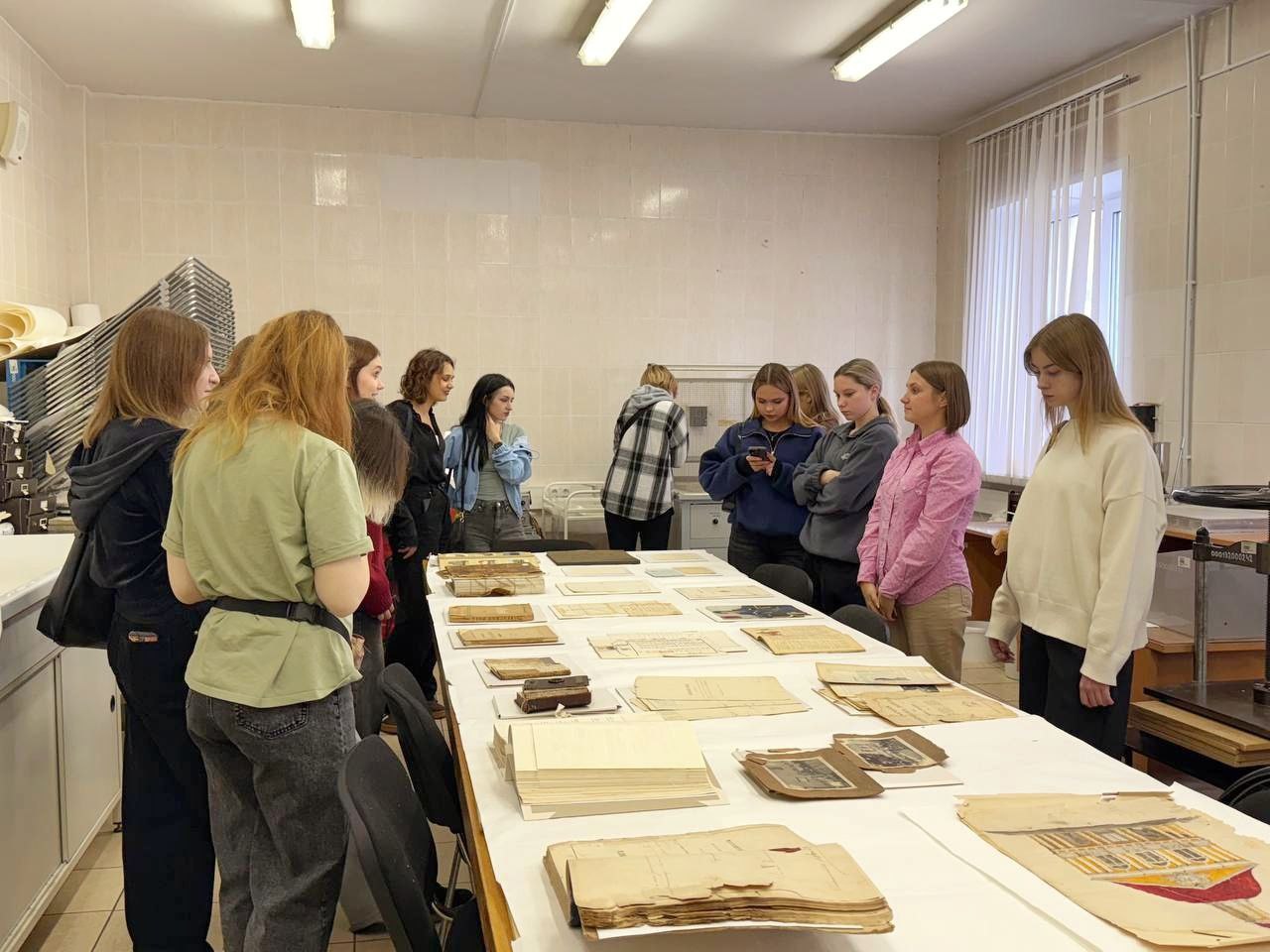 Учащиеся прошли по расширенному маршруту, посетив лаборатории сложной реставрации и сканирования, а также один из отделов хранения. И на каждой локации они буквально засыпали наших специалистов вопросами!
