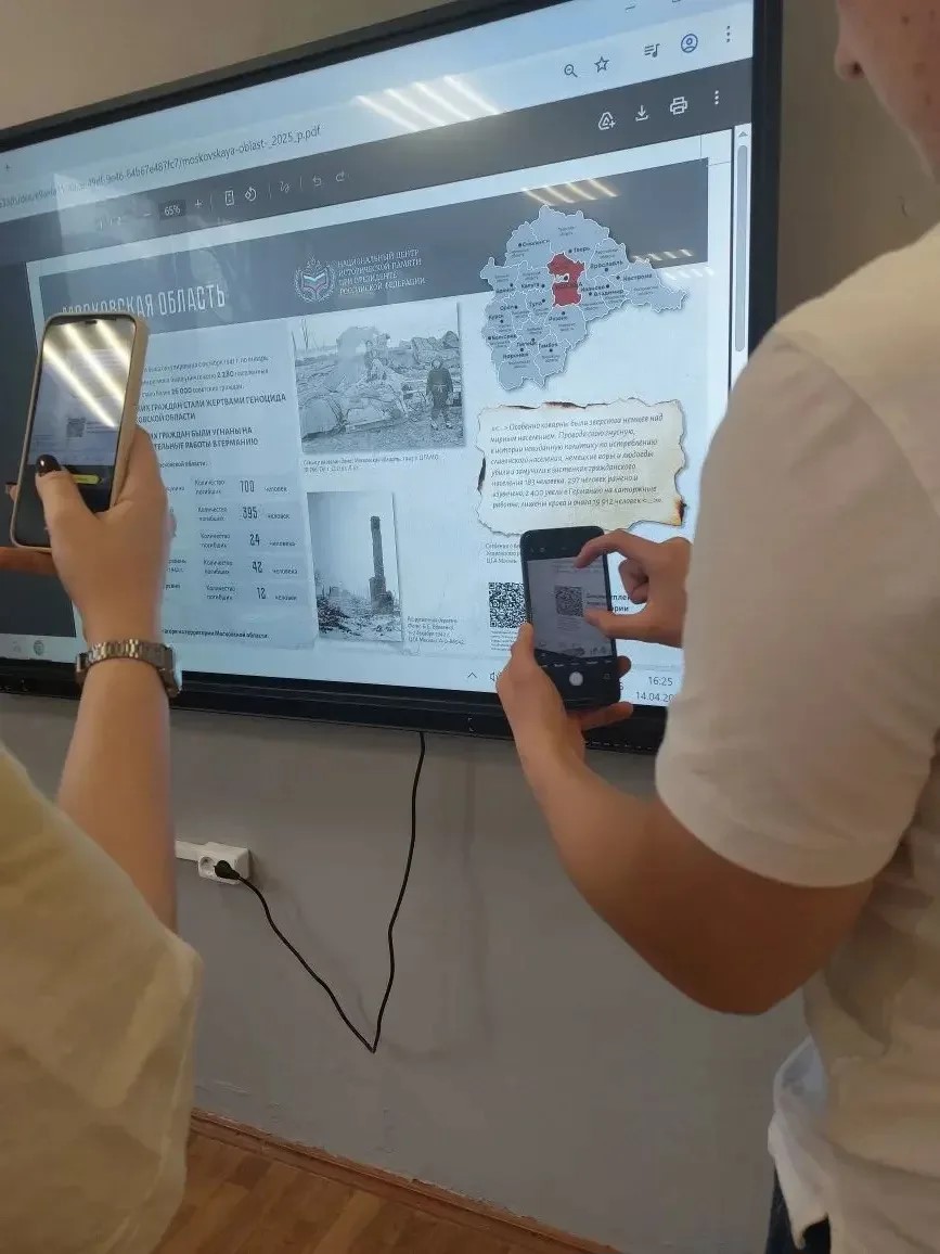 Вторым событием стал круглый стол, посвящённый теме геноцида на территории Московской области. Студенты активно участвовали в дискуссии, отвечали на вопросы, делились мнениями и размышляли о том, как память о прошлом формирует наше будущее. В завершение встречи все присутствующие почтили память погибших минутой молчания.