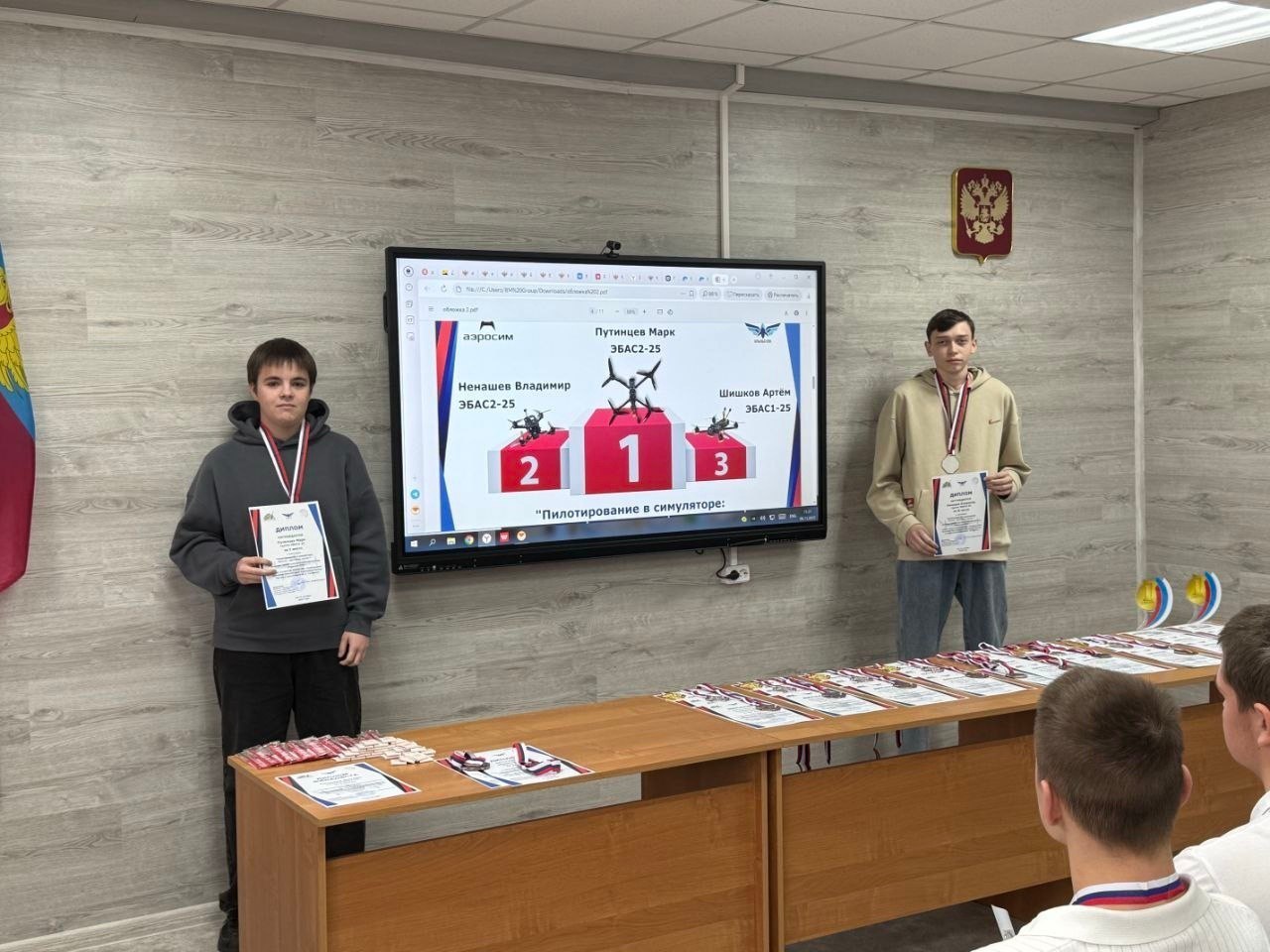 «Пилотирование в симуляторе" - одна из самых массовых категорий в рамках студенческого конкурса проф. мастерства "Крылья СПО". В ней приняли участие более ста студентов различных специальностей. Соревнования проводились на российской образовательной платформе (симуляторе) Удобный интерфейс, наличие обучающих уроков, трасс и миссий разной сложности обеспечили комфортный уровень вхождения для новичков и позволили продемонстрировать профессионализм опытным пилотам. Финал прошёл в трёх дисциплинах. Его итоги: Пилотирование по стандартной трассе: Алёшкин И., ЭБАС-24 Осетров М., ЭБАС2-25 Шутовский В., ЭБАС2-25 Пилотирование по сложной трассе: Дубровин Д., ЭБАС-24 Киселёв Н., ЭБАС-23 Шишков А., ЭБАС1-25 Миссия "Доставка грузов": Путинцев М., ЭБАС2-25 Ненашев В., ЭБАС2-25 Шишков А., ЭБАС1-25 Поздравляем и желаем не останавливаться на достигнутом!