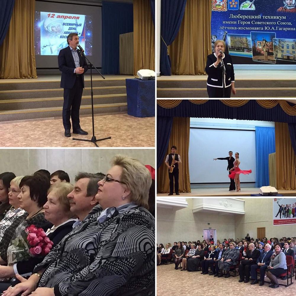 В преддверии Всемирного дня авиации и космонавтики в Люберецком техникуме имени Героя Советского Союза, лётчика-космонавта Ю.А. Гагарина прошёл праздничный концерт, на котором присутствовали уважаемые гости - Герой России, лётчик-космонавт А.И. Лазуткин, ветеран труда А.Л. Вождаев и хранительница музея Ю.А. Гагарина Быкова Е.П.