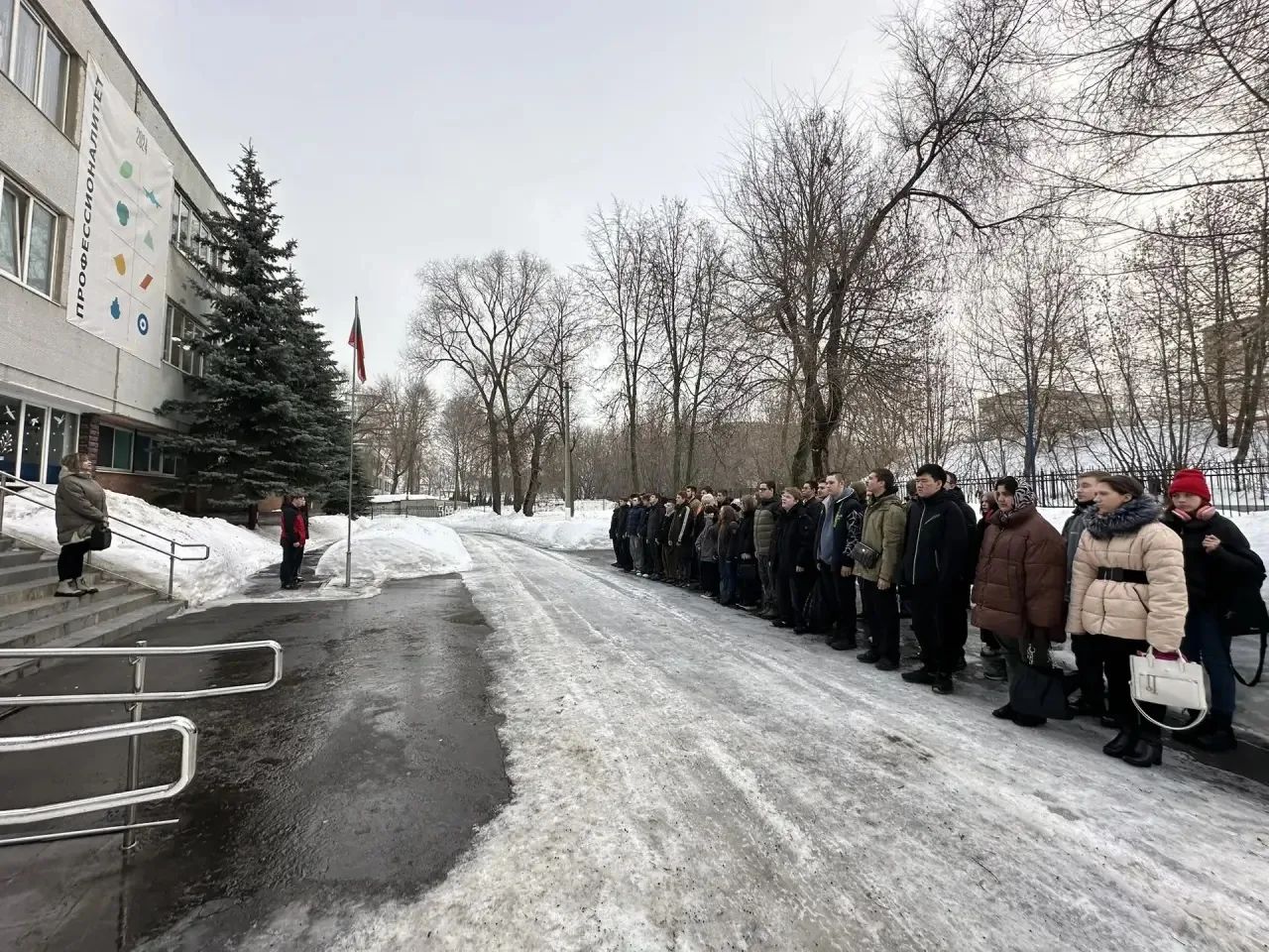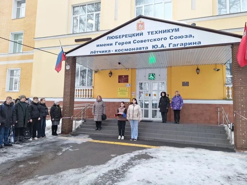 Учебная неделя в Люберецком техникуме имени Ю.А. Гагарина традиционно началась с церемонии поднятия флага и исполнения государственного гимна Российской Федерации.