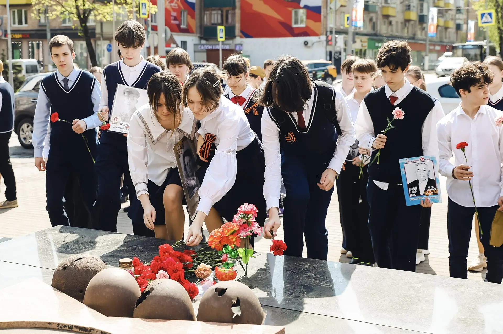 В школах будут созданы «Стены памяти» из портретов родственников-героев, а окна украсят рисунками, белыми журавлями и Георгиевскими лентами. Также пройдут акции: