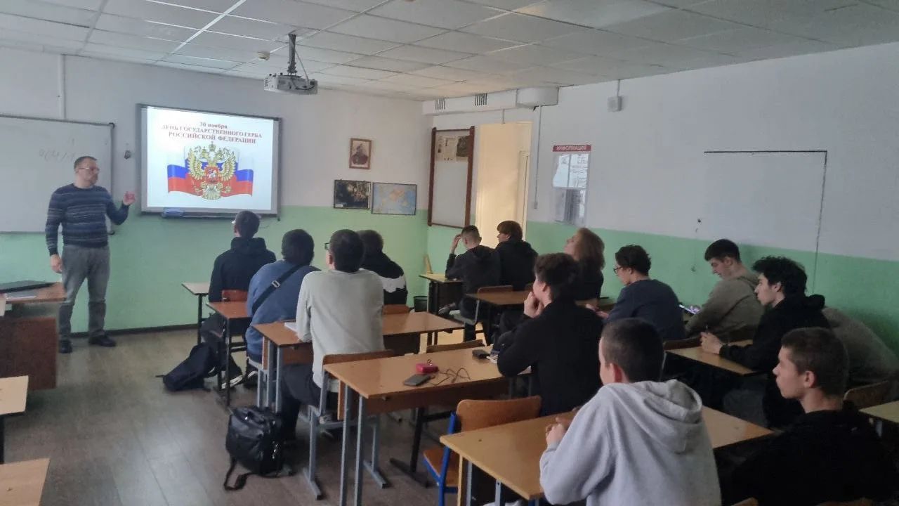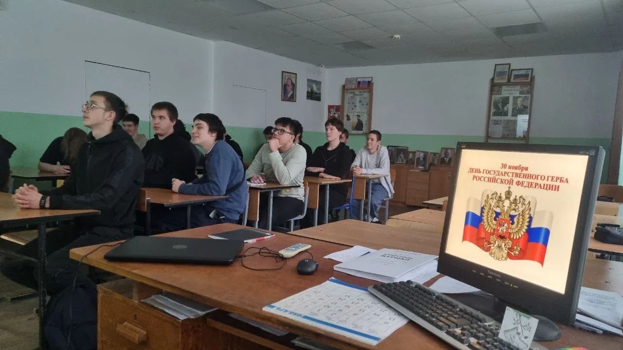 В преддверии Дня государственного герба Российской Федерации в Люберецком техникуме имени Ю.А. Гагарина, в рамках занятия по истории, были проведены познавательный классный час, посвящённый истории появления государственного герба нашей страны, а также викторина на тему государственной символики Российского государства. Студенты техникума не только узнали много новых фактов о гербе Российской Федерации, но и продемонстрировали свои знания в области государственной символики нашей Родины.