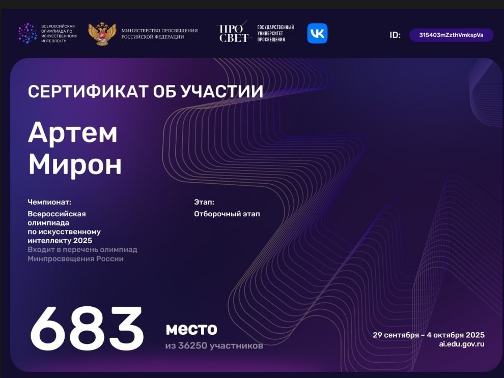 Студенты Люберецкого техникума имени Ю.А. Гагарина приняли участие во Всероссийской олимпиаде по искусственному интеллекту 2025 на платформе All Cups!
